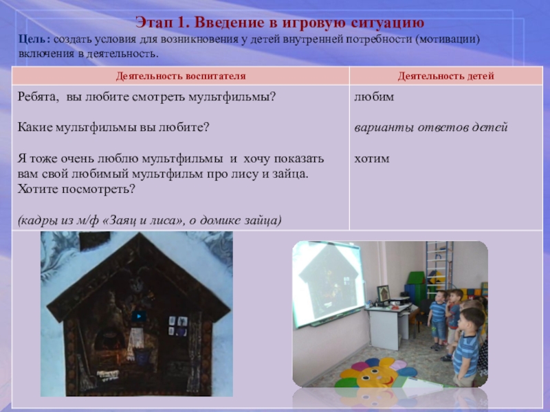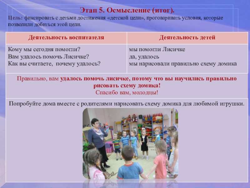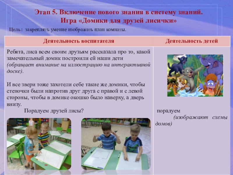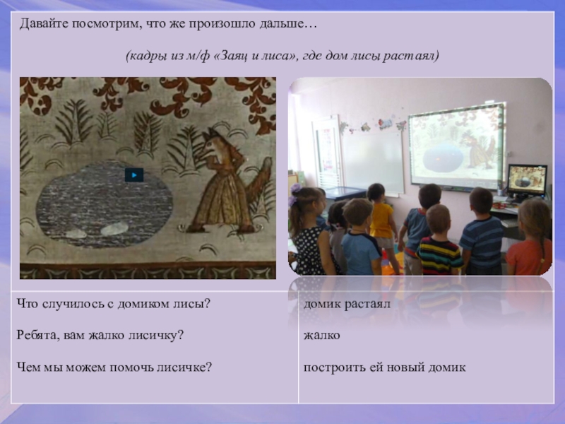 Лиса приглашает к себе в деток в новый домик на праздник, чтобы поиграть и потанцевать.