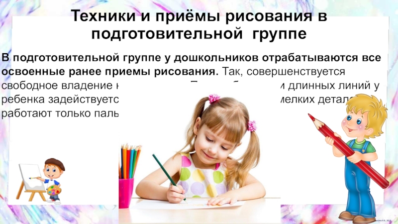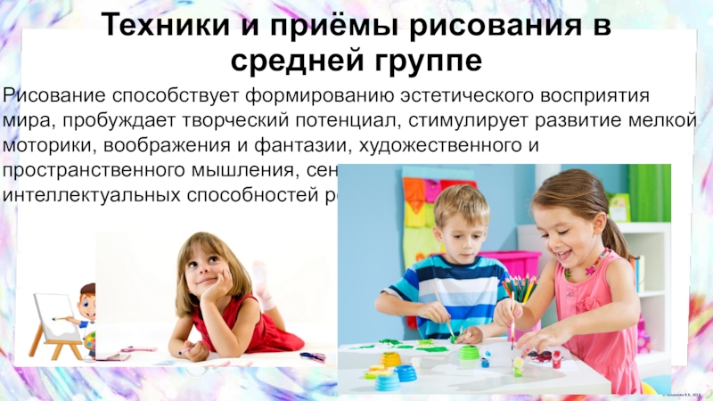 Слайд 14Техники и приёмы рисования в средней группе