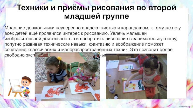 Слайд 4Техники и приёмы рисования во второй младшей группе