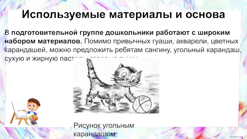 привычных гуаши, акварели, цветных карандашей, можно предложить ребятам сангину, угольный карандаш, сухую и жирную пастель, гелевые ручки.