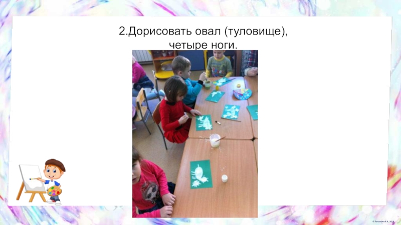 Слайд 182.Дорисовать овал (туловище), четыре ноги.