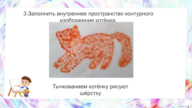 Слайд 113.Заполнить внутреннее пространство контурного изображения котёнка.