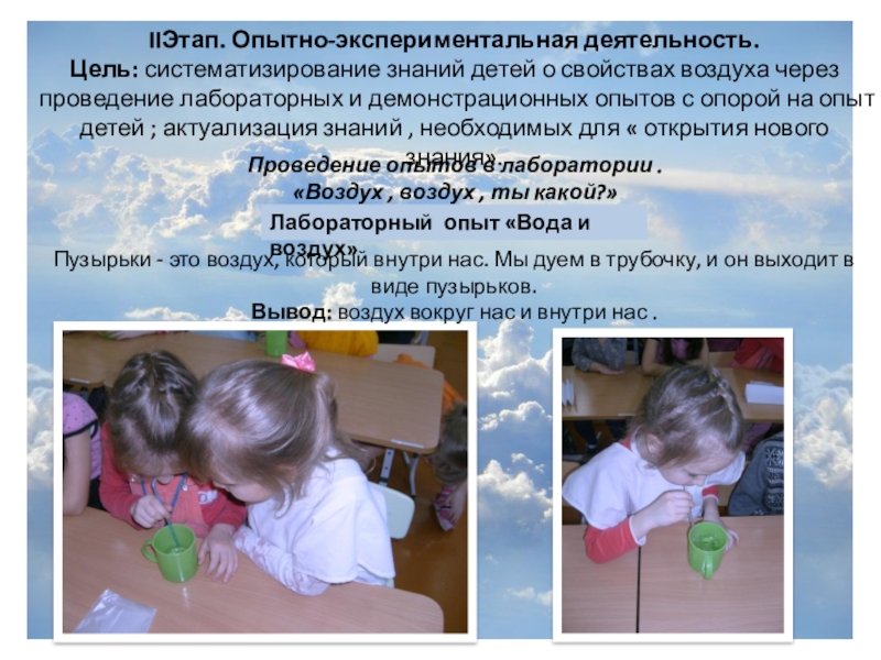 Проведение опытов в лаборатории . «Воздух , воздух , ты какой?»