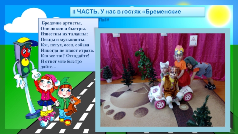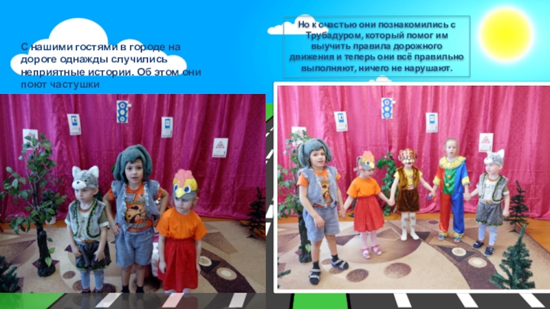 С нашими гостями в городе на дороге однажды случились неприятные истории. Об этом они поют частушки