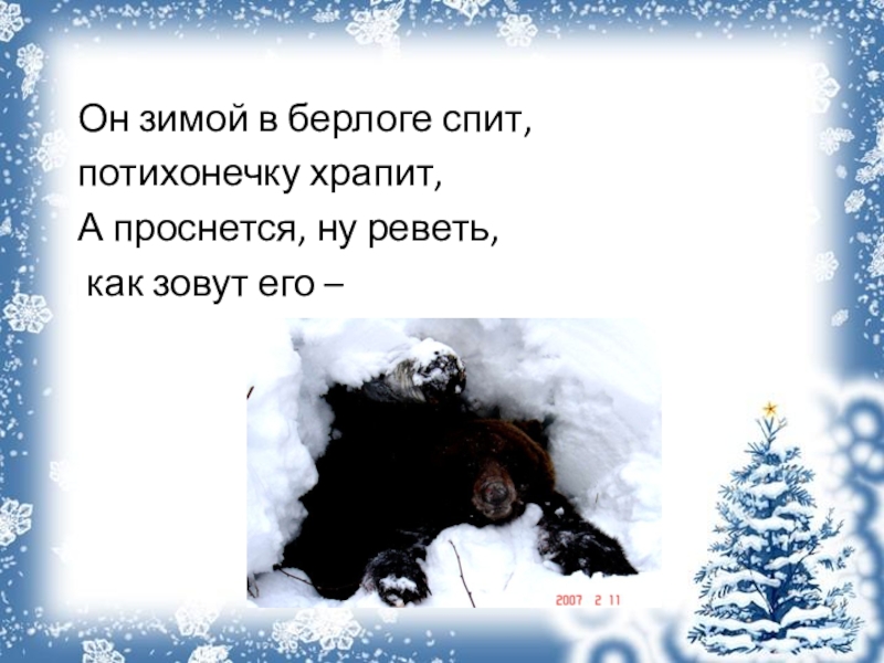 Он зимой в берлоге спит, потихонечку храпит, А проснется, ну реветь, как зовут его –