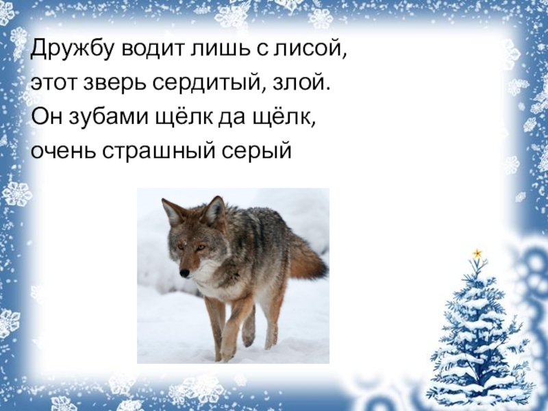 Дружбу водит лишь с лисой, этот зверь сердитый, злой.Он зубами щёлк да щёлк, очень страшный серый