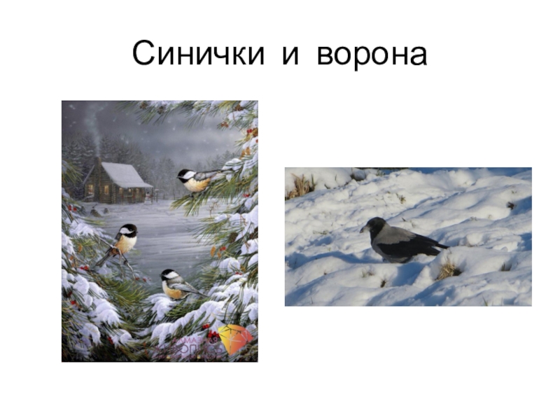 Слайд 11Синички и ворона