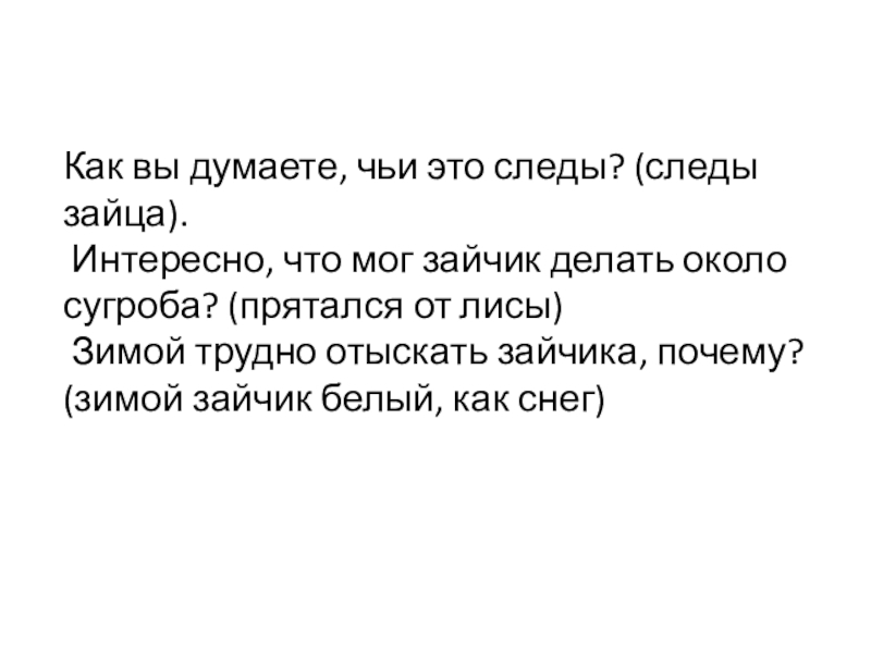 Слайд 14Как вы думаете, чьи это следы? (следы зайца).