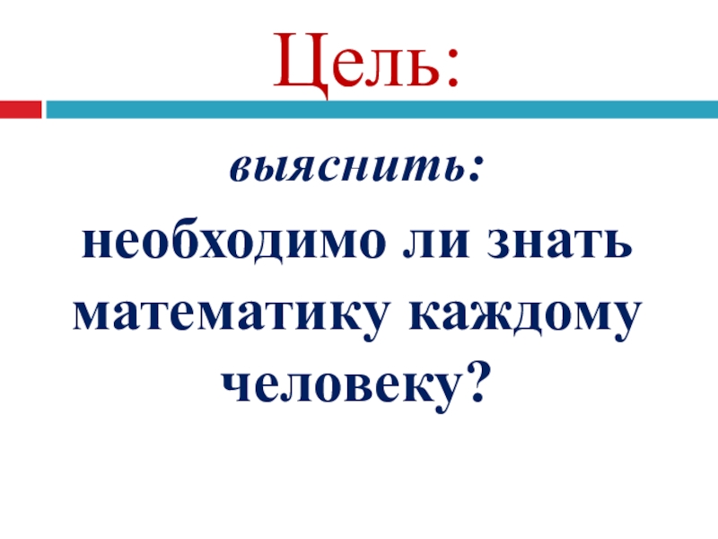 Цель:выяснить: необходимо ли знать математику каждому человеку?