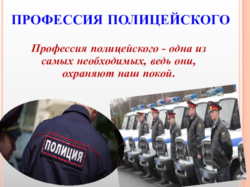 ПРОФЕССИЯ ПОЛИЦЕЙСКОГОПрофессия полицейского - одна из самых необходимых, ведь они, охраняют наш покой.