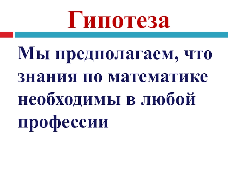ГипотезаМы предполагаем, что знания по математике необходимы в любой профессии