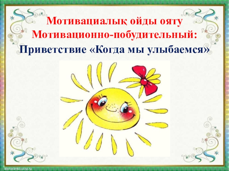 Мотивациалық ойды ояту Мотивационно-побудительный: Приветствие «Когда мы улыбаемся»