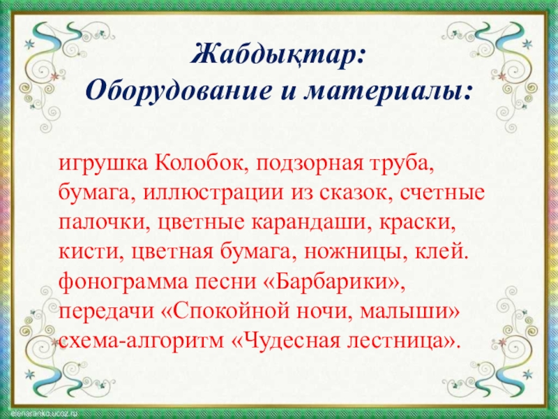 Слайд 7 Жабдықтар: Оборудование и материалы: