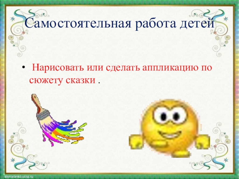 Самостоятельная работа детей Нарисовать или сделать аппликацию по сюжету сказки .