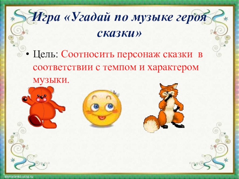 Слайд 16Игра «Угадай по музыке героя сказки»