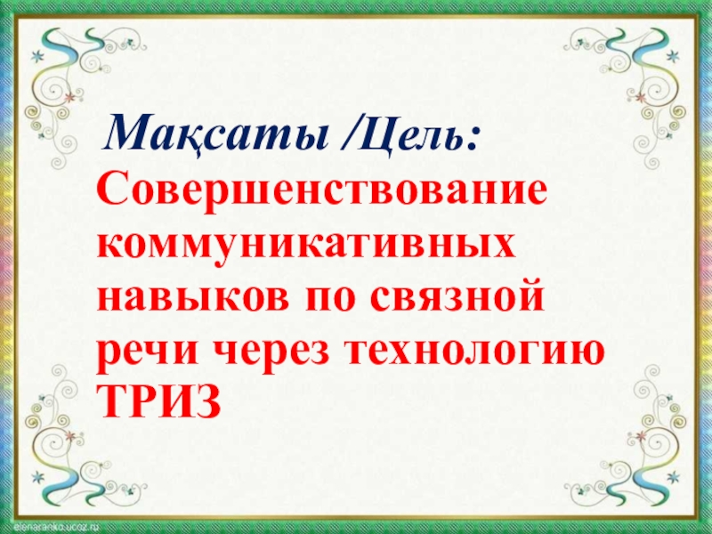 Мақсаты /Цель: Совершенствование коммуникативных навыков по связной речи через технологию ТРИЗ