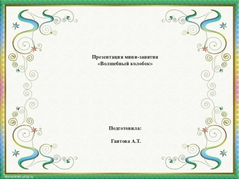 Слайд 1 Презентация мини-занятия «Волшебный колобок» Подготовила: Гаитова А.Т.