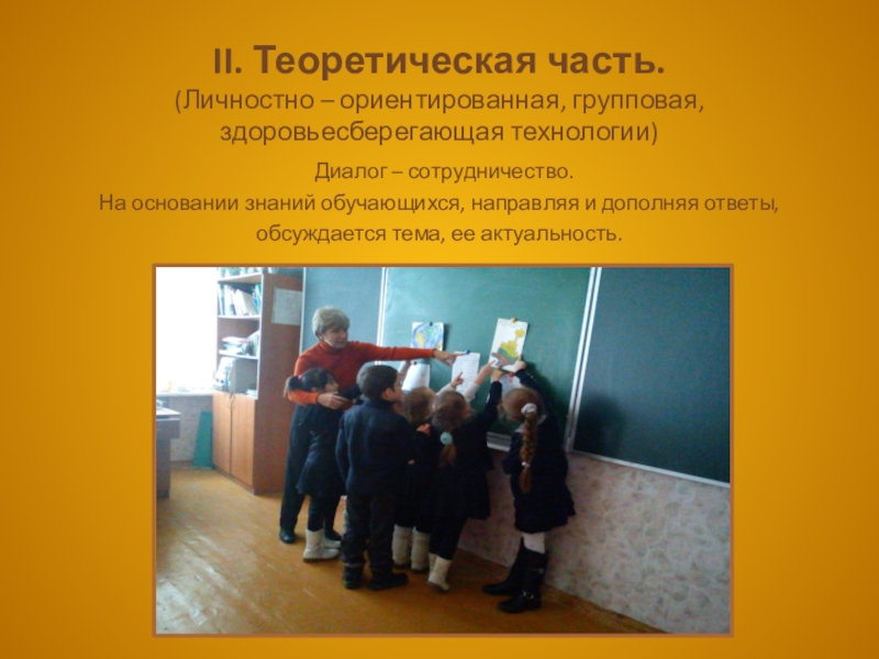 Слайд 5II. Теоретическая часть. (Личностно – ориентированная, групповая, здоровьесберегающая технологии)