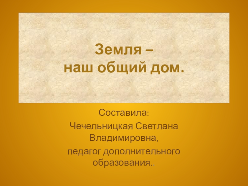 Земля – наш общий дом.Составила:Чечельницкая Светлана Владимировна,педагог дополнительного образования..