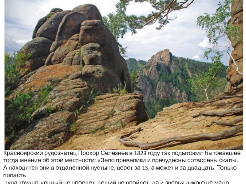 Слайд 6Красноярский рудознатец Прохор Селезнев в 1823 году так подытожил бытовавшее