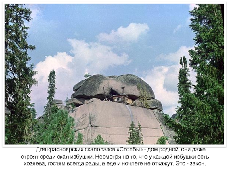 Слайд 26 Для красноярских скалолазов «Столбы» - дом родной, они даже строят среди