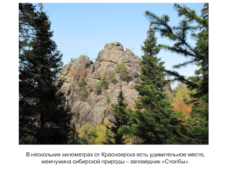 Слайд 2В нескольких километрах от Красноярска есть удивительное место, жемчужина сибирской природы