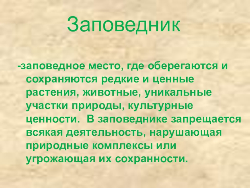 Заповедник-заповедное место, где оберегаются и сохраняются редкие и ценные растения, животные, уникальные участки природы, культурные ценности. В