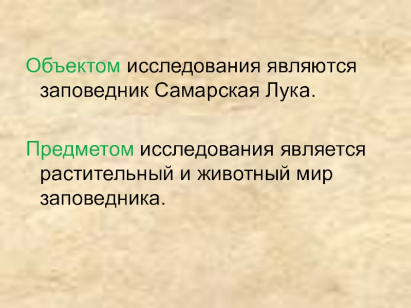 Объектом исследования являются заповедник Самарская Лука.Предметом исследования является растительный и животный мир заповедника.