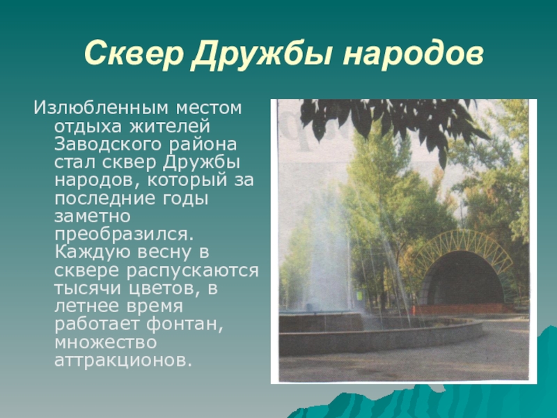 Слайд 16Сквер Дружбы народов