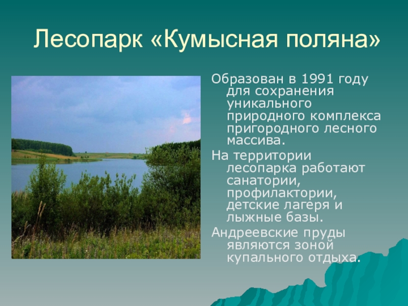 Слайд 11Лесопарк «Кумысная поляна»