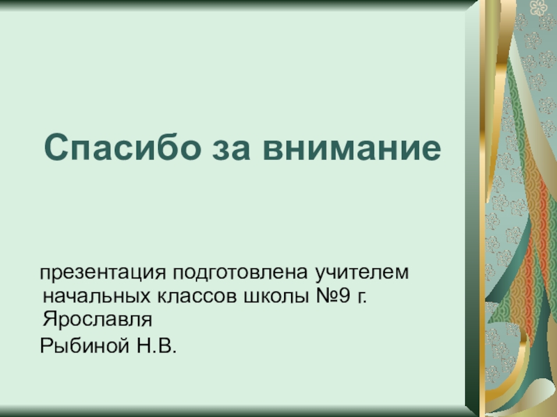 Исследователь: учитель начальных классов средней школы №9 Рыбина Н.В.