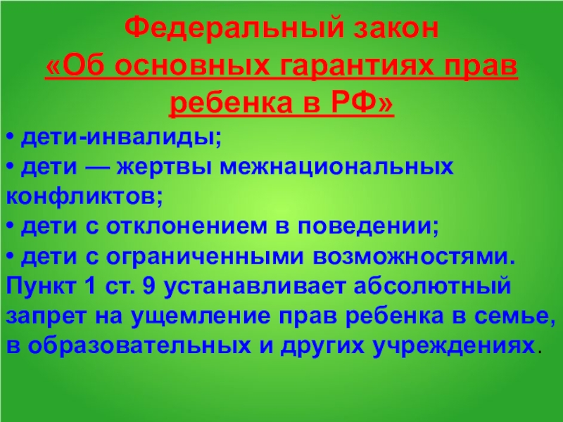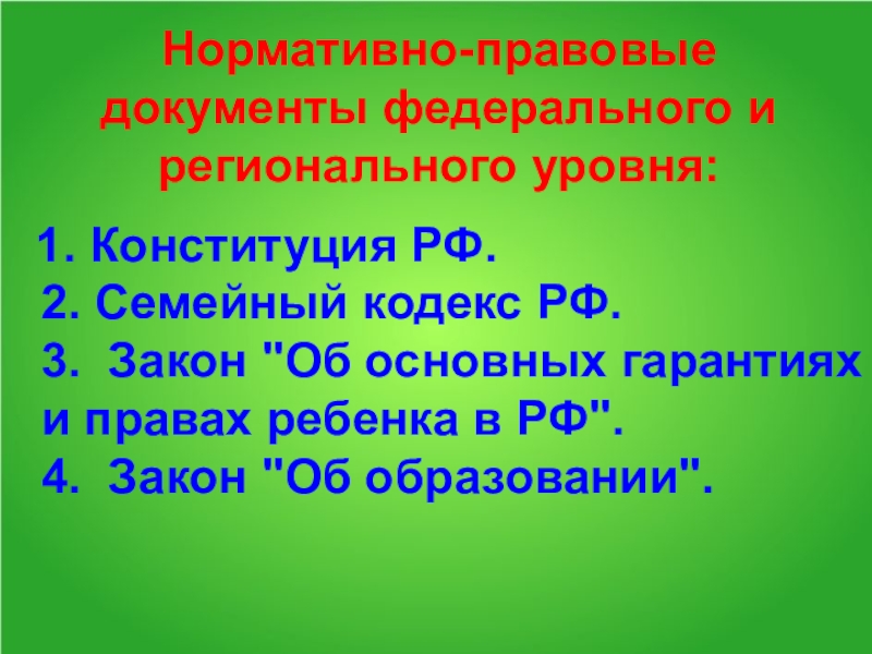 3. Закон "Об основных гарантиях и правах ребенка в РФ".