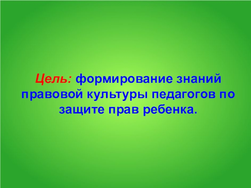 Слайд 2Цель: формирование знаний правовой культуры педагогов по защите прав ребенка.