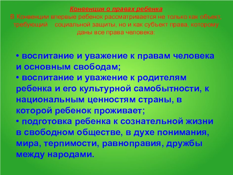как объект, требующий социальной защиты, но и как субъект права, которому даны все права человека: