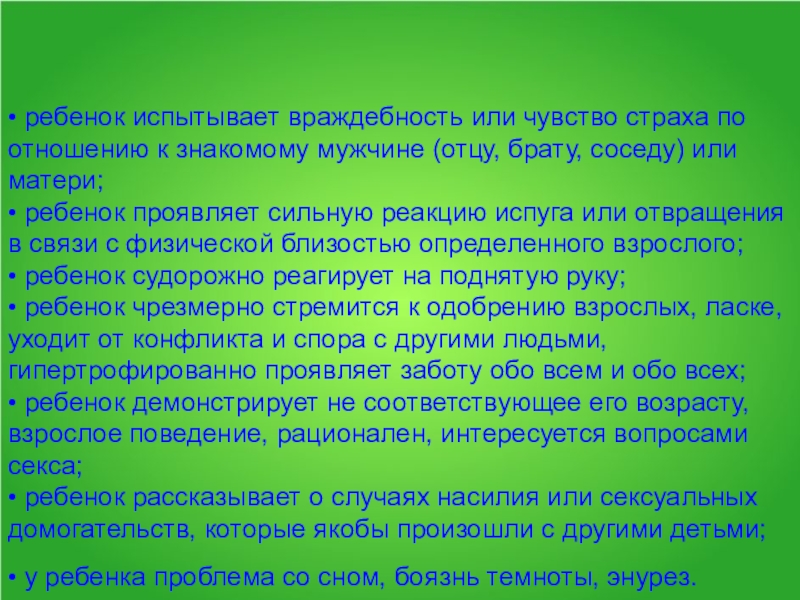 Слайд 20• ребенок испытывает враждебность или чувство страха по отношению к знакомому
