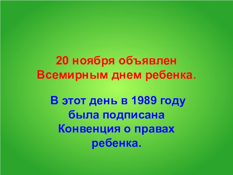 Слайд 420 ноября объявлен Всемирным днем ребенка.
