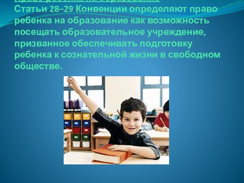 Статьи 28–29 Конвенции определяют право ребенка на образование