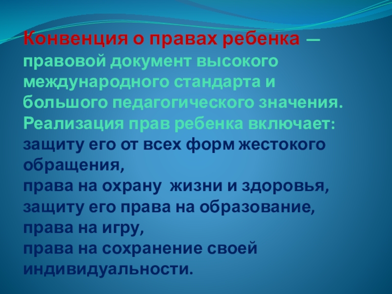 Слайд 10Конвенция о правах ребенка — правовой документ высокого международного стандарта и