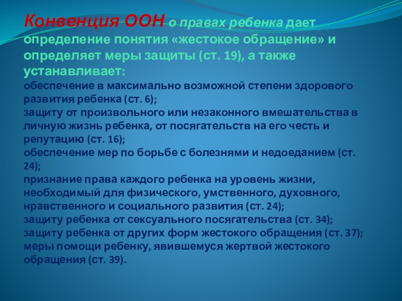 Слайд 5Конвенция ООН о правах ребенка дает определение понятия «жестокое обращение» и