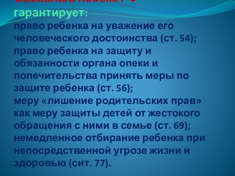 Слайд 8Семейный Кодекс РФ гарантирует: