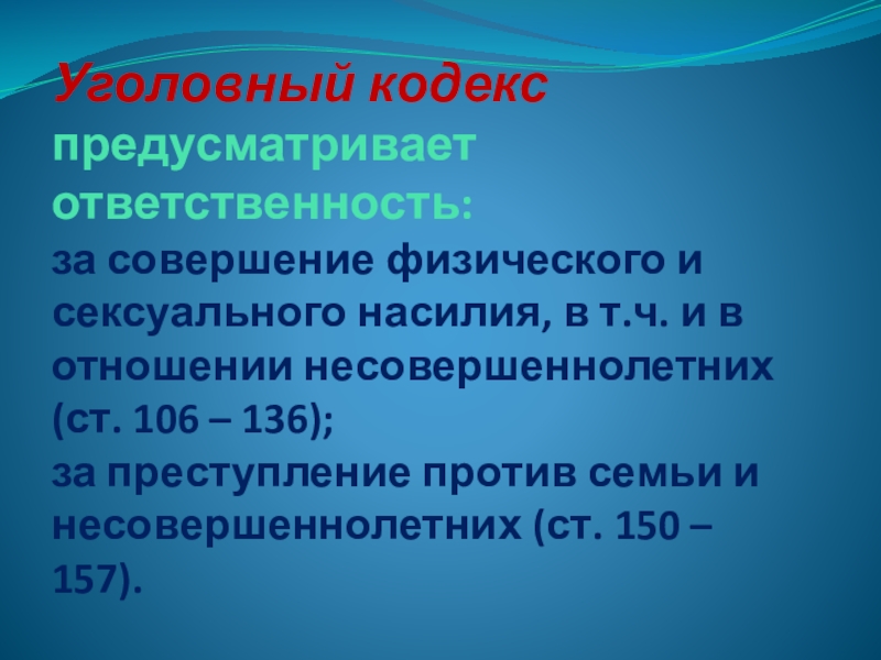 Слайд 7Уголовный кодекс предусматривает ответственность: