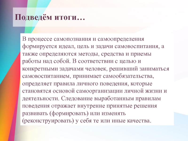 Задача формирования личности учащегося выступает как задача обеспечения его культурно-личностного роста. Решение этой задачи возможно через организацию обучения, затрагивающие субъектный опыт самого ученика а главное - базовые личностные образования.