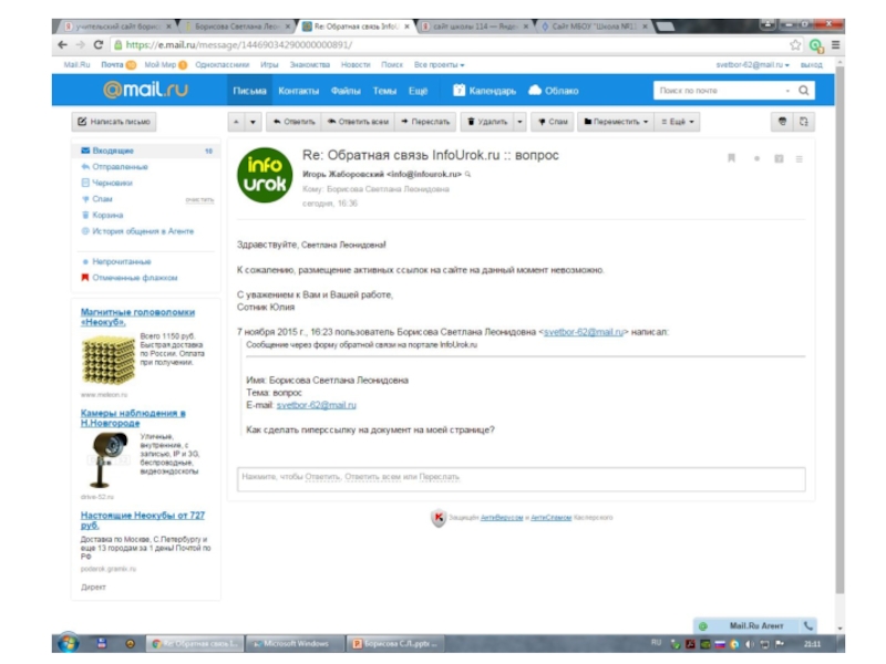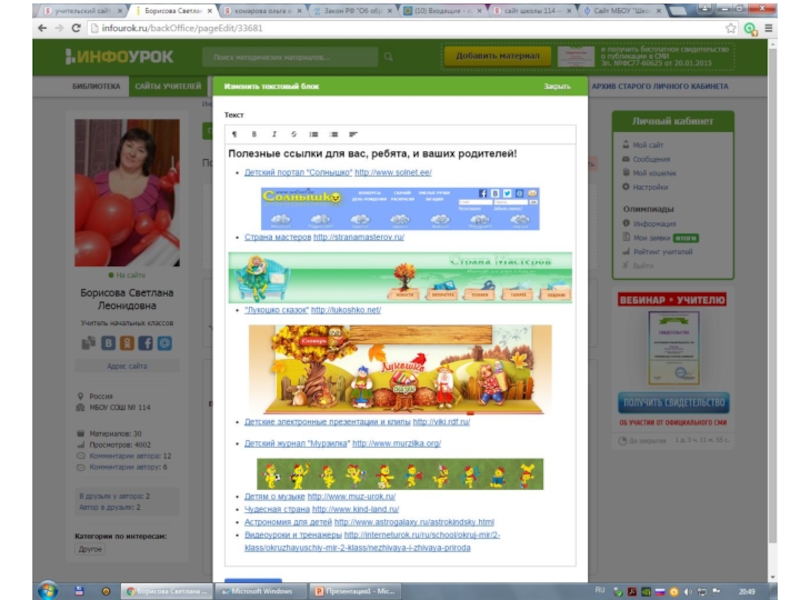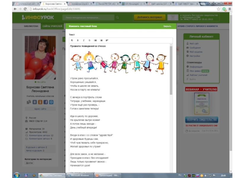 Это сайт презентаций, где можно хранить и обмениваться своими презентациями, докладами, проектами, шаблонами в формате PowerPoint с другими пользователями. Мы помогаем школьникам, студентам, учителям, преподавателям хранить и обмениваться учебными материалами.