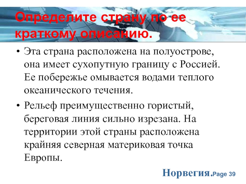 Слайд 39Определите страну по ее краткому описанию.