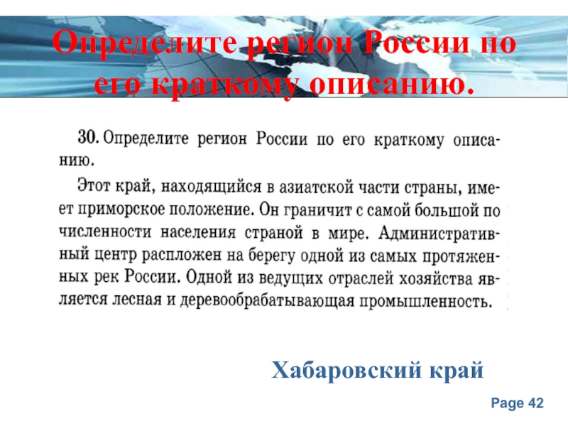 Слайд 42Определите регион России по его краткому описанию.