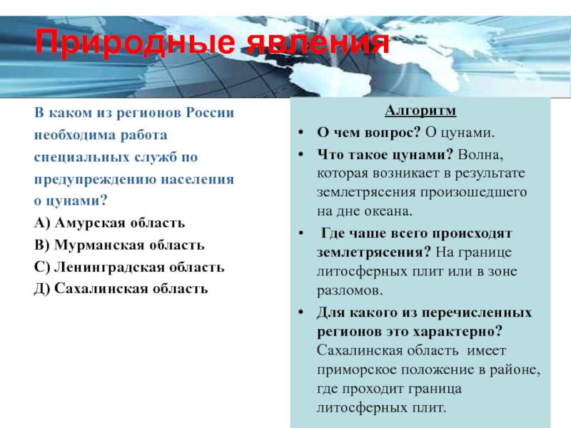 Для какого из перечисленных регионов это характерно? Сахалинская область имеет приморское положение в районе, где проходит граница литосферных плит.