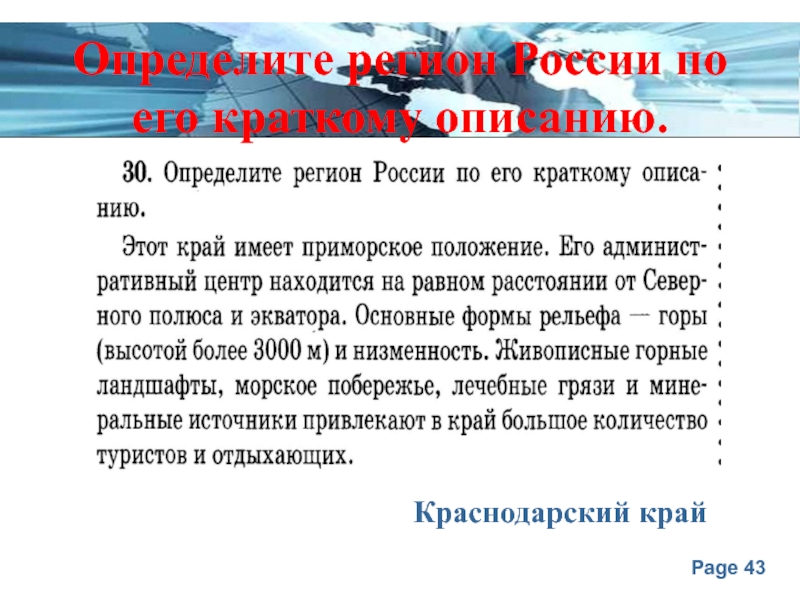 Слайд 43Определите регион России по его краткому описанию.