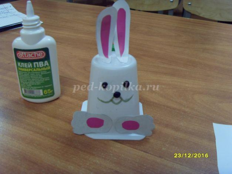 Презентация, доклад Зайчик из пластикого стаканчика