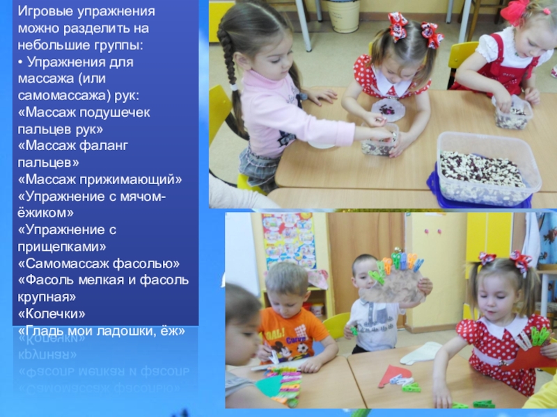 Слайд 10Игровые упражнения можно разделить на небольшие группы: