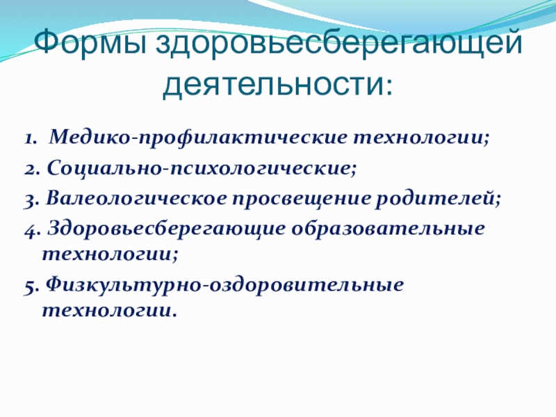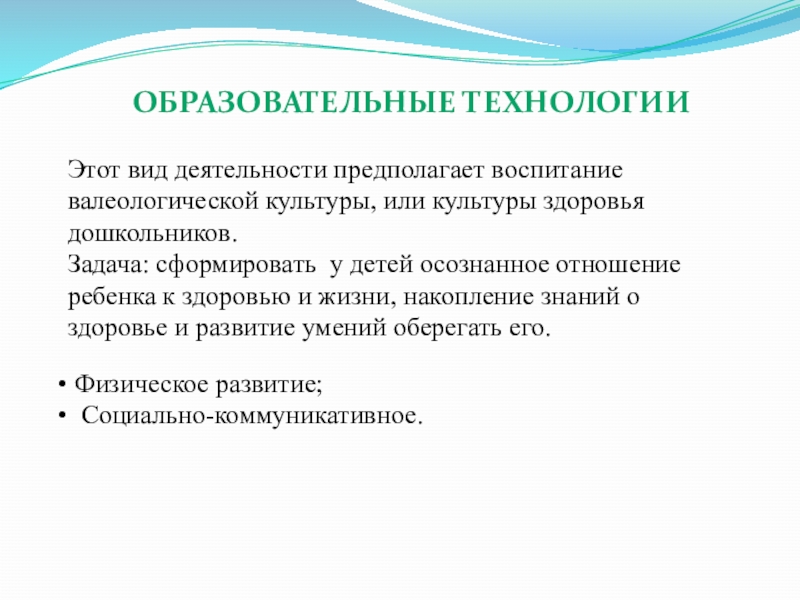 Этот вид деятельности предполагает воспитание валеологической культуры, или культуры здоровья